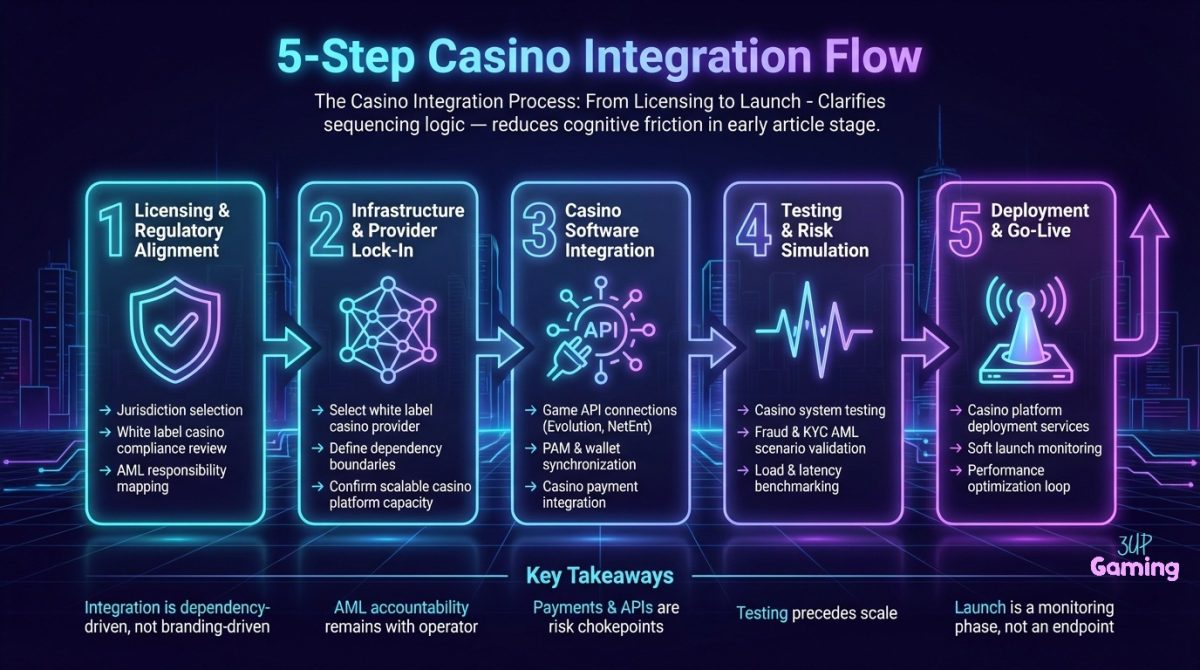However, the real white label casino integration process is not so much like throwing a switch but rather like sequencing a multi-system implementation through the regulatory stress. Whether payments. KYC. reporting jurisdictional thresholds, or API maturity. They all have their own time of their own.