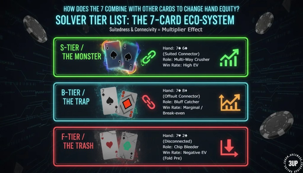 The decision on whether a 7 adds equity or a dead weight is determined by suitedness, connectivity and blockers.