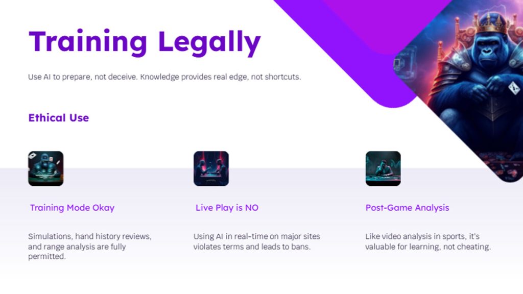 But with that same AI in live games on sites like GGPoker or PokerStars? That’s a TOS violation and a fast track to bans, account closure, and reputational damage. There is a great divide between the use of AI for growth and when it is used improperly.