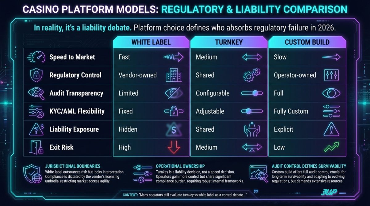 Turnkey platforms are full-fledged casino platforms, however in 2026, regulatory capacity is more significant than speed or game volume.