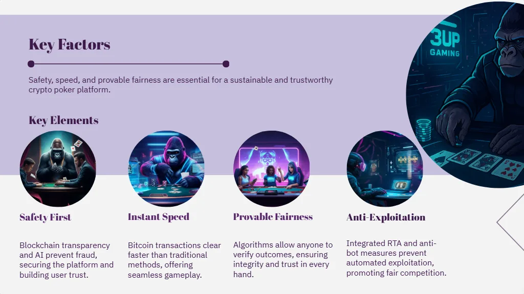 The future of bitcoin poker will not be limited to cash tables and quick payments. It already has its ecosystems, entire poker economies with rewards baked in, with fairness assured by AI and its secondary market. 3UP Gaming already produces them via NFT characters, rake schemes that could be personalized, fairness monitored by AI and have fraud prevention programs as its main.