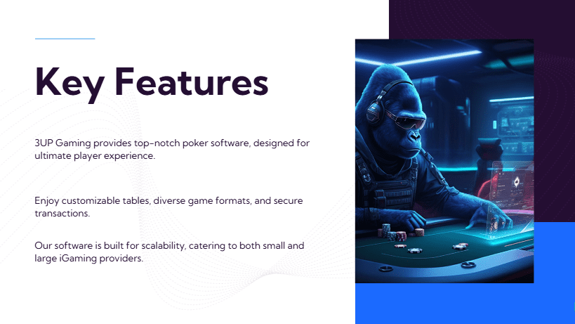 That is we at 3UP Gaming present you with very customizable poker software from in depth to the core which we have designed for your brand’s needs and to also enhance your players’ experience.