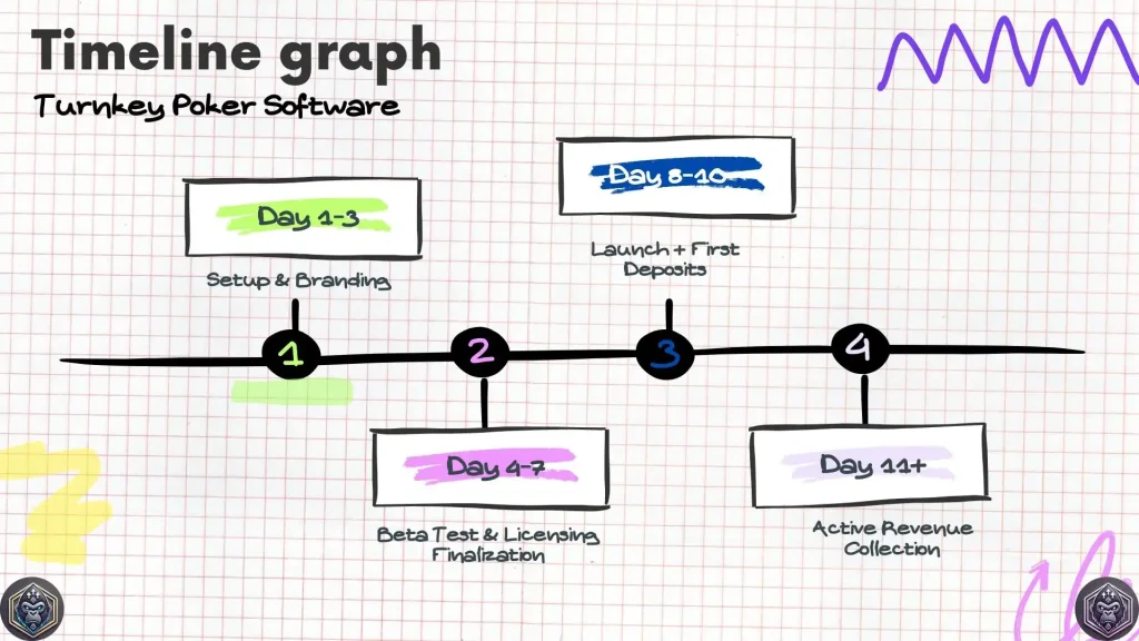Choosing which partner to go with is very important. Top turnkey poker software companies provide great tech solutions, reliable support, and a fast set up (usually within 7-14 days.