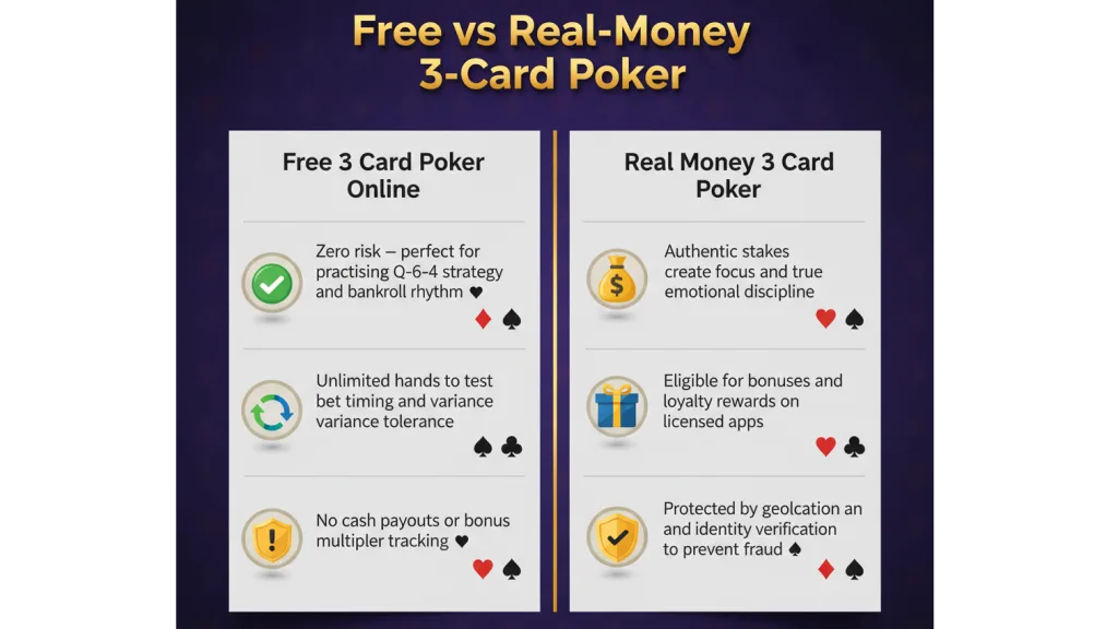 - 📱 Mobile is King: The mobile-first speed and a smooth play are the most successful in 3 Card poker online.