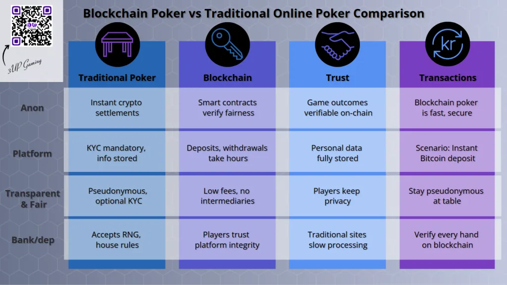 Here’s how intelligent automation and open-box testing can coexist in the same streamlined framework as demonstrated with the API-based poker framework of 3UP Gaming. Blockchain poker does not reinvent the game; it re-engineers trust itself. Here, crypto wallets may allow players to own money physically.